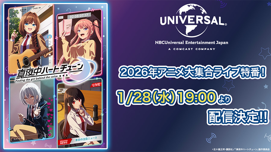 1月28日(水)に、NBCユニバーサル・エンターテイメントジャパンによる「2026年アニメ大集合ライブ特番」の配信が決定!