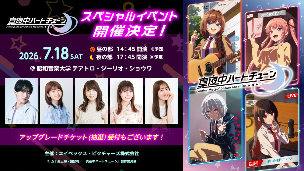 7月18日(土)TVアニメ『真夜中ハートチューン』 スペシャルイベント 開催決定!